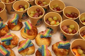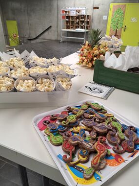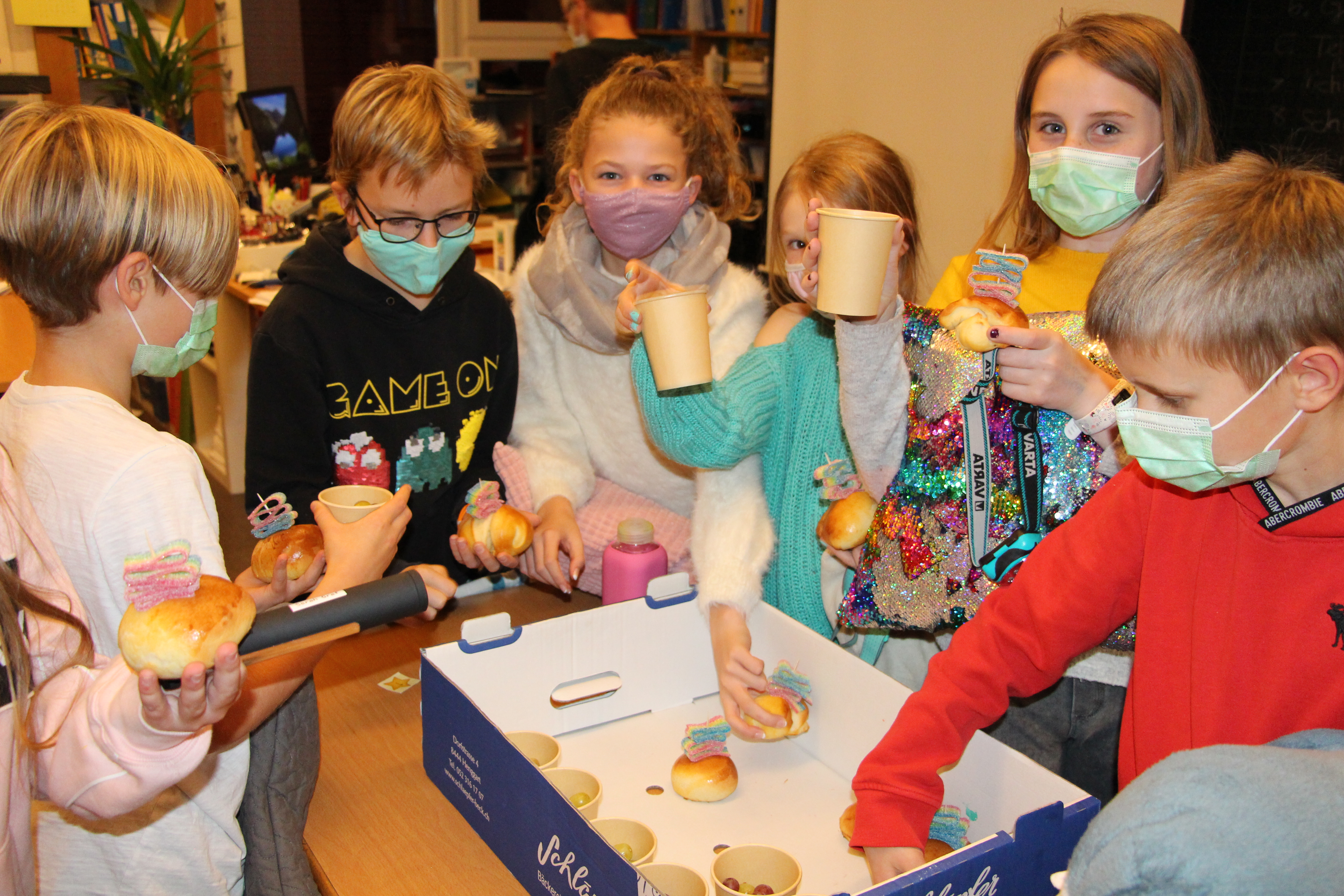 Wie jedes Jahr (ausser natürlich im Corona-Jahr 2020...), durften wir auch dieses Jahr wieder die Verpflegung für die Erzählnacht organisieren. Das gehört immer zu einem der Highlights für uns. Dieses Jahr haben wir 140 "Weltkugel-Brötli" gebacken, alle mit Regenbogen-Gummischlangen verziert, Becher zum Thema der Erzählnacht "Unser Planet- unser Zuhause" gestaltet und diese mit Früchten gefüllt.