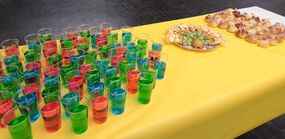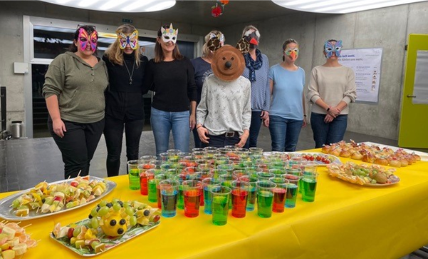 Wie jedes Jahr, durften wir auch dieses Jahr wieder die Verpflegung für die Erzählnacht organisieren. Das Thema war Verwandlung - Früchte wurden in Tiere und Wasser in verschiedene Farben verwandelt.