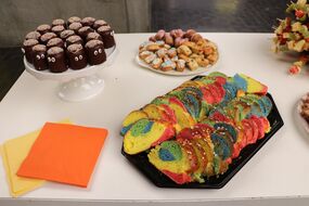 Wir organisierten die Verpflegung in der Pause passend zum Thema. Traumhaft bunt und süss. Die Gemüsesticks waren zwar bunt, offenbar aber zu wenig süss. Sie fanden die wenigste Beachtung. Der Rest des Buffets wurde beinahe vollständig verputzt.